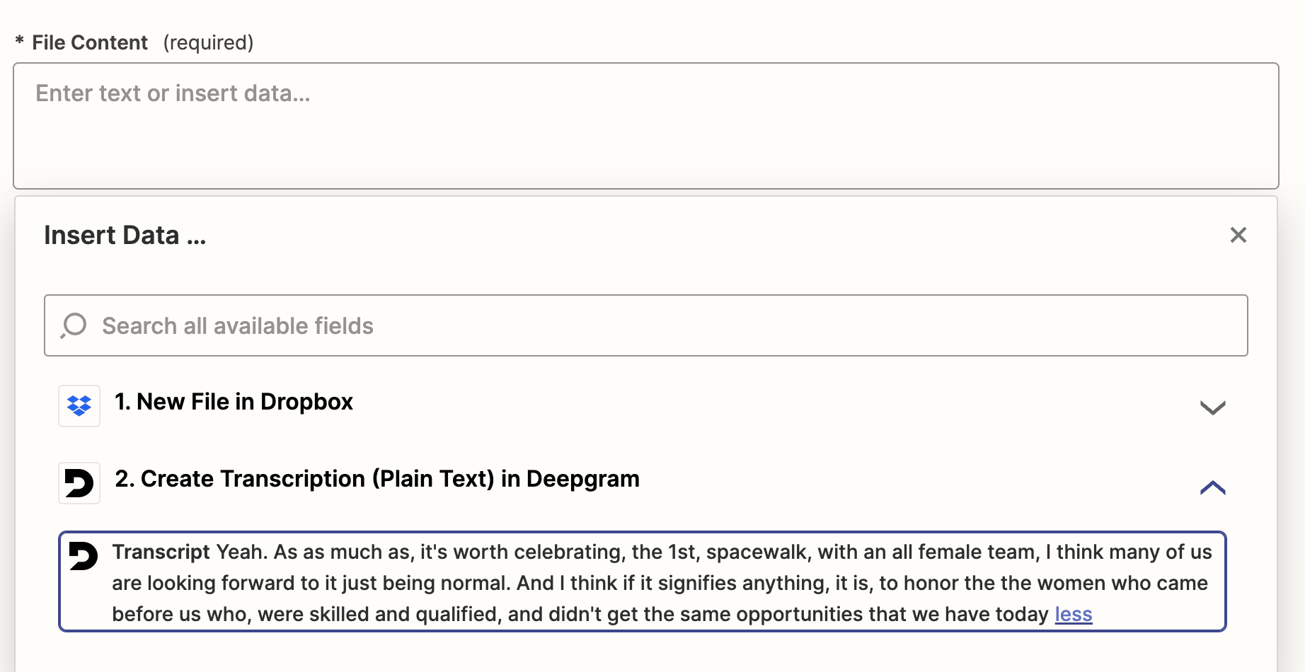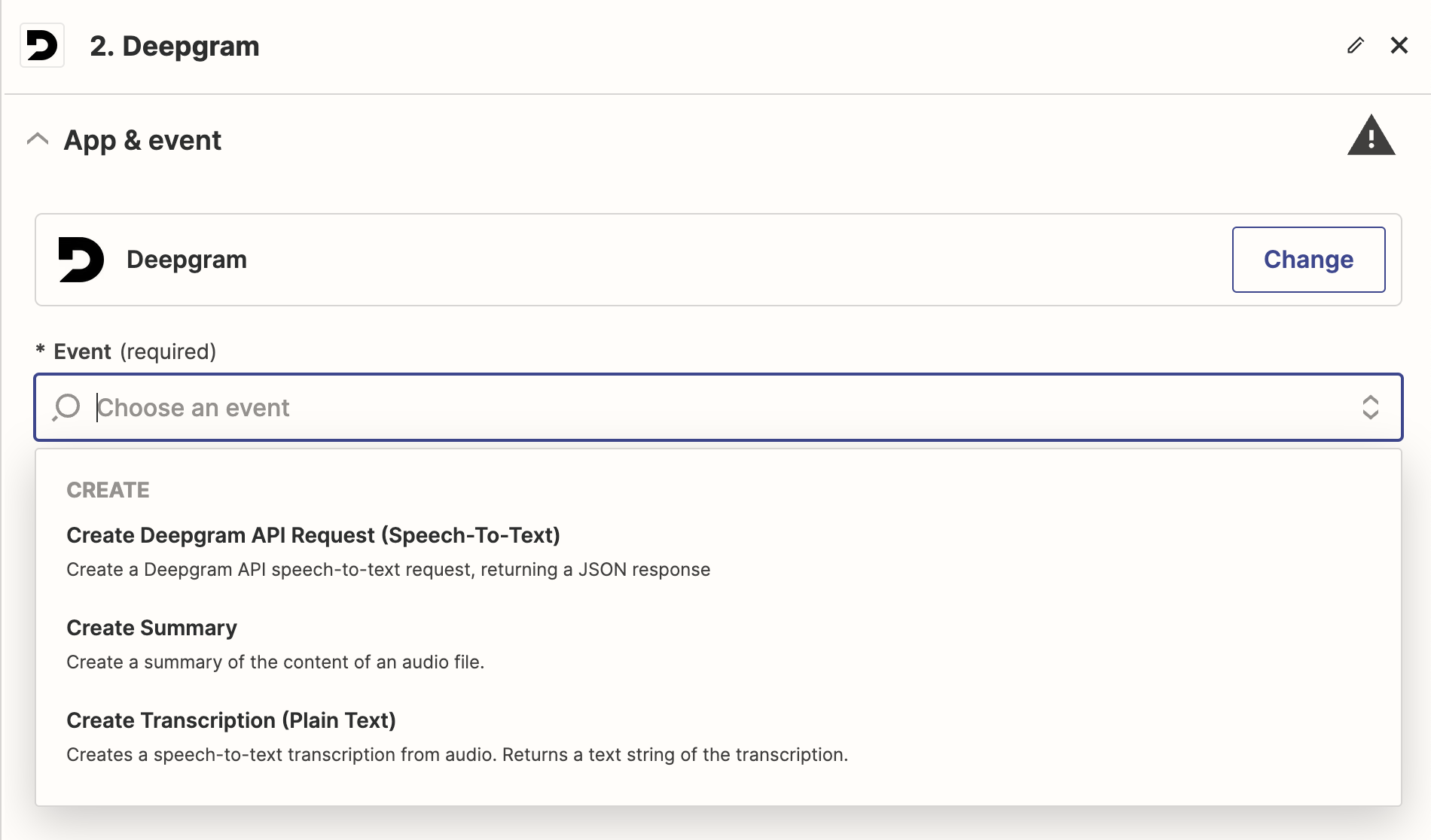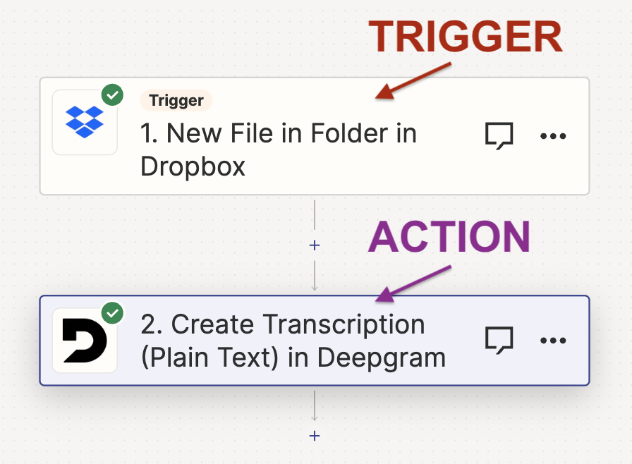 Currently, Deepgram offers these actions in Zapier: