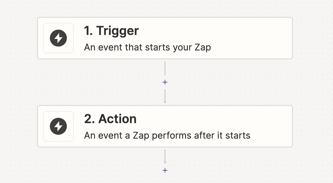 Zapier workflows are called “Zaps.” A Zap is a connection between two apps made up of a trigger and one or more actions.